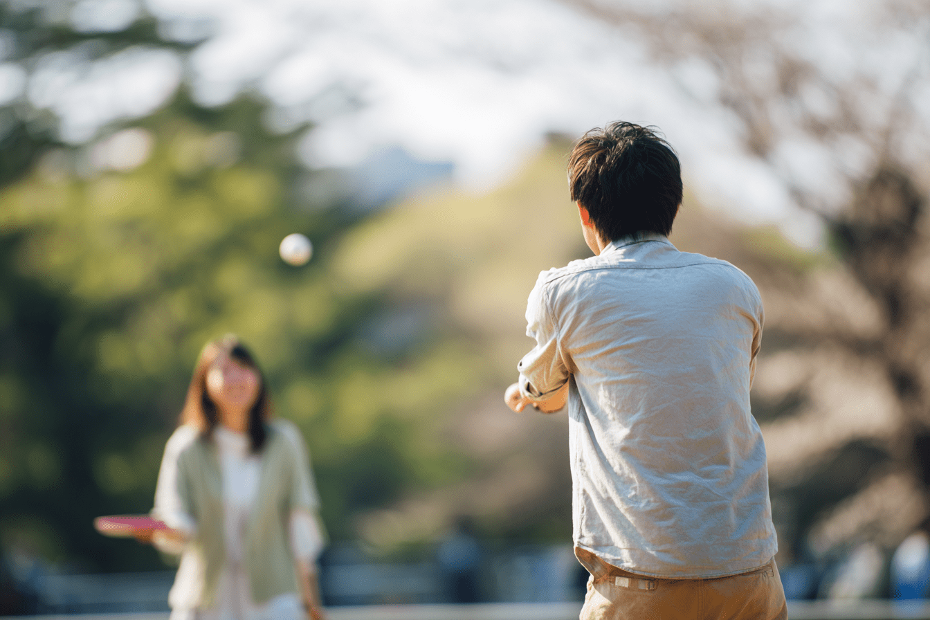 遊び道具を持っていけば、フリスビーやキャッチボールなど外ならではの遊びも楽しめます。